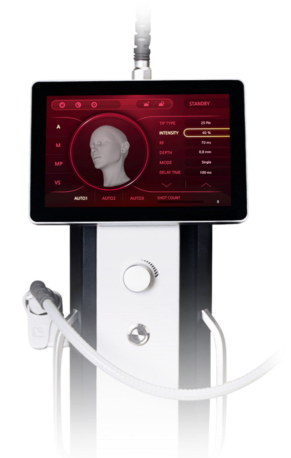 Fractional Micro-needle RF인 시크릿RF는 마이크로 25핀 니들이 피부 진피 층까지 고주파 에너지를 전달하는 장비입니다. 시크릿RF는 피부재생 뿐만 아닌, 스킨부스터 약물 전달을 위한 장비로서 균일한 고주파에너지를 일정한 깊이로 전달하여 통증을 최소화 하였습니다. Fractional 레이저와 비교시 다운타임이 매우 적고, 표피에 열손상이 적어 부작용이 매우 적습니다. 따라서 피부타입에 영향받지 않고 안전하게 사용가능한 장비입니다.